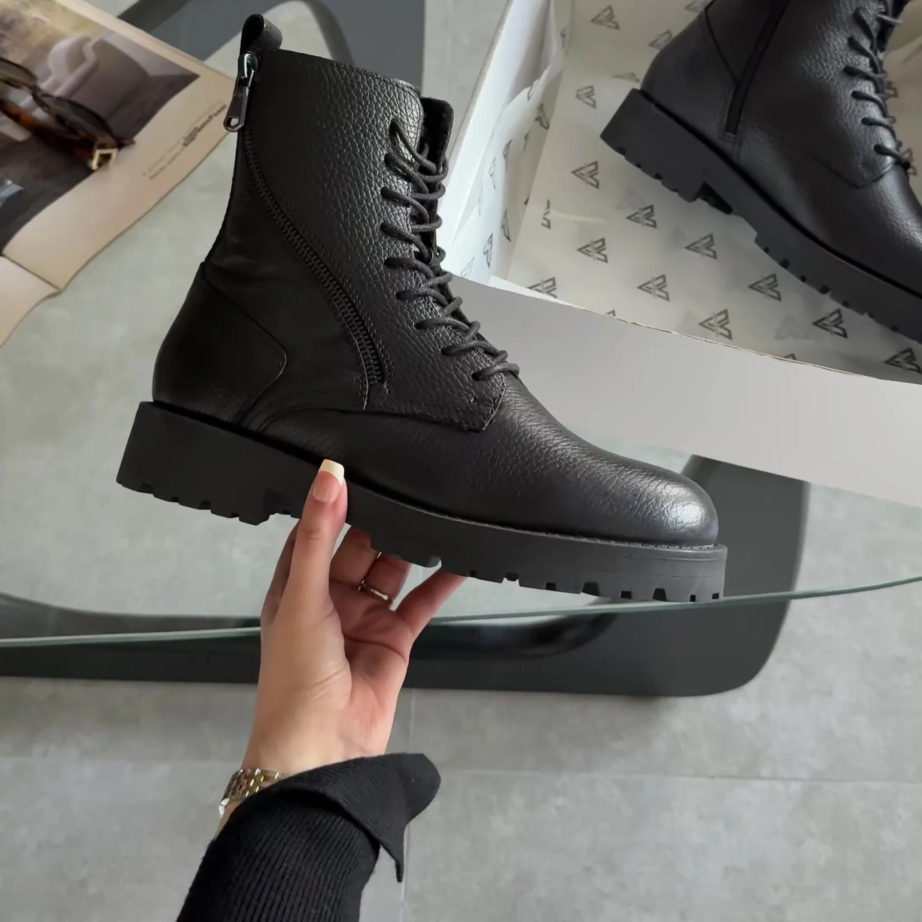 • Real textured leather upper that feels rich and ages with character • Lace-up front paired with a zipper guard—fit dialed in or slip on with ease • Chunky sole around 1.2 inches thick for height, grip, and cushioning • Boot height approximately 6 inches—covers the ankle without weighing you down • Size range includes EU 37 to 41 for a tailored women’s fitFashion That Rides: